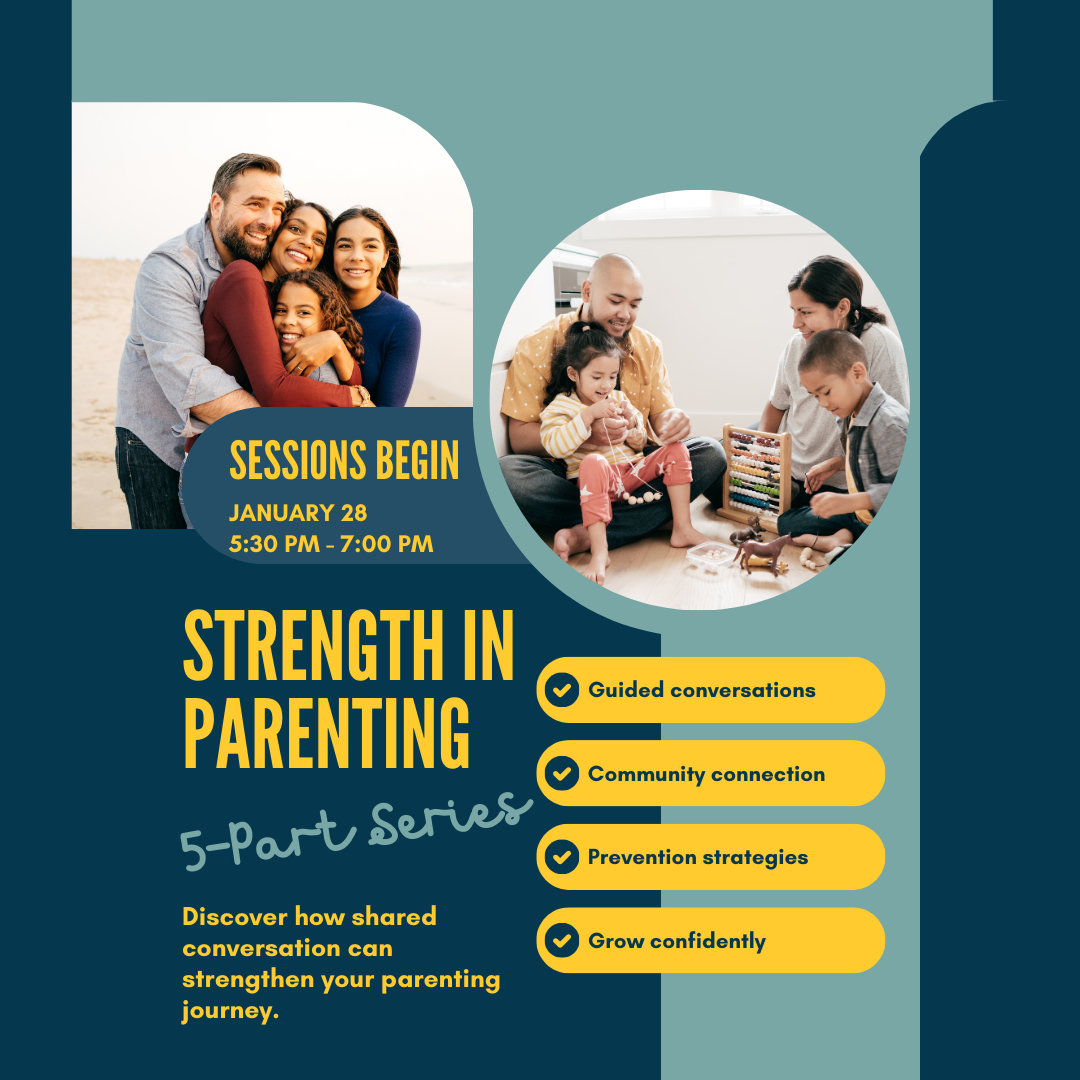 Strength in Parenting is a new monthly seminar-style series for parents and guardians of students in grades 5–12, starting January 28. Families will engage in guided conversations focused on connection, prevention, and practical strategies. Space is limited.