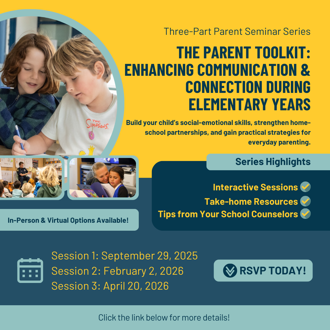 Join our 3-part parent series packed with practical strategies to support your child’s social-emotional growth, strengthen communication and connection, and build confidence at home and school. Learn tools for problem-solving, navigating friendships, and fostering stronger home-school partnerships.